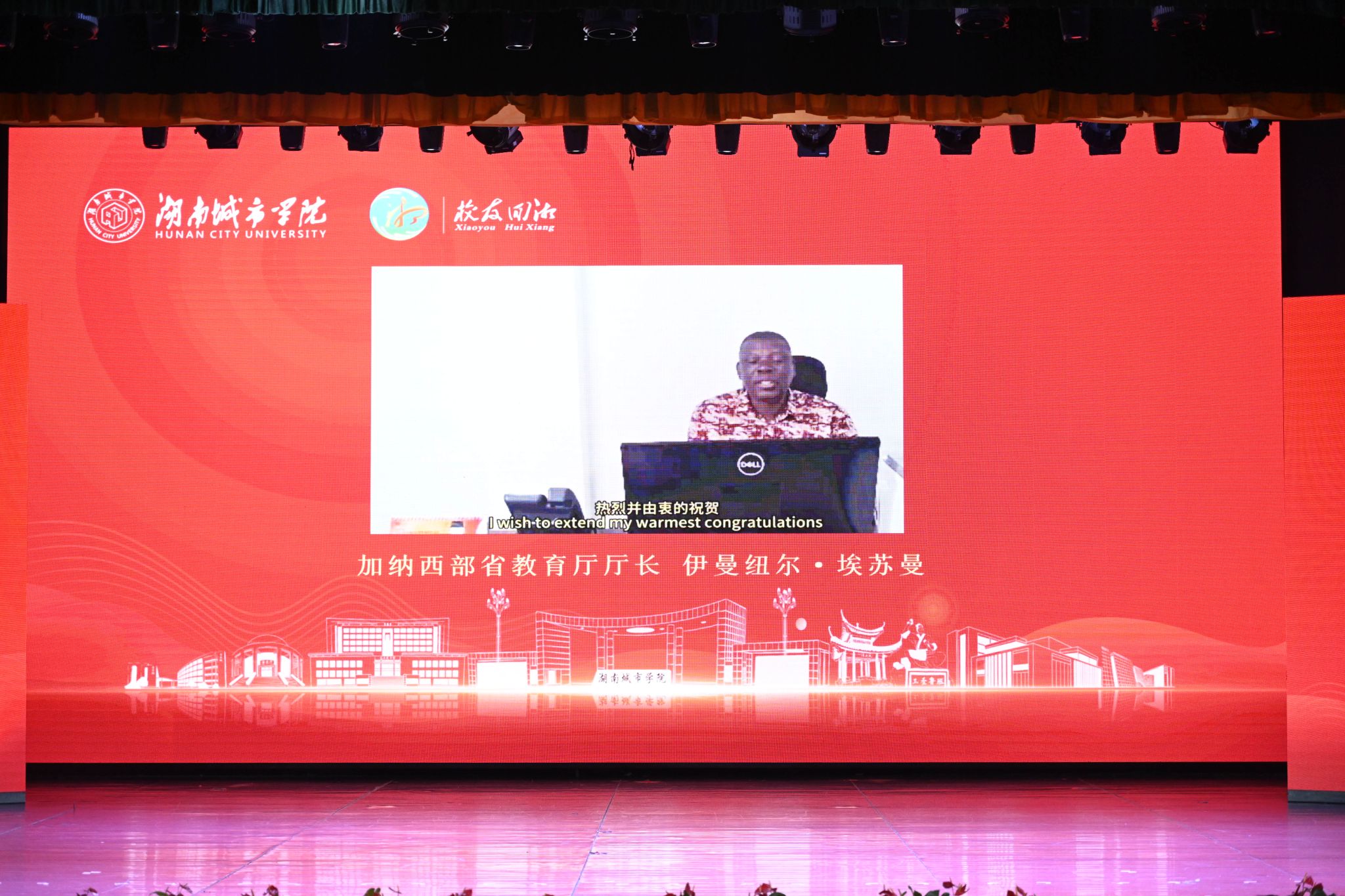 加纳中部省教育厅厅长Emmanuel Essuman、加纳海岸角大学校长Prof. Denis Worlanyo Aheto从海外发来祝贺视频,为学校办学55周年送上最真挚的祝福。学校长期以来坚持开放办学、深化国际合作,2015年与加纳海岸角大学共同举办了全省同类院校中首个孔子学院。