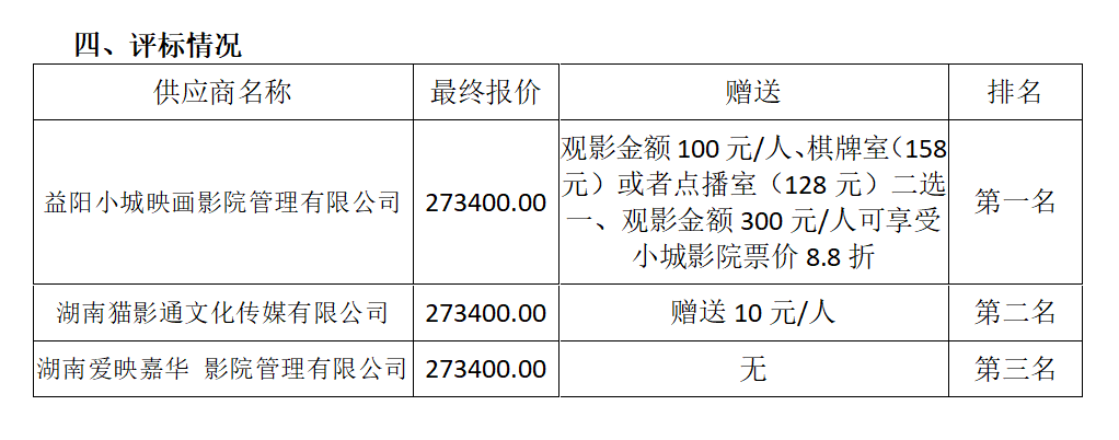 2025年教职工观影服务项目竞争性谈判于2025年4月15日结束,现将成交结果公告如下: